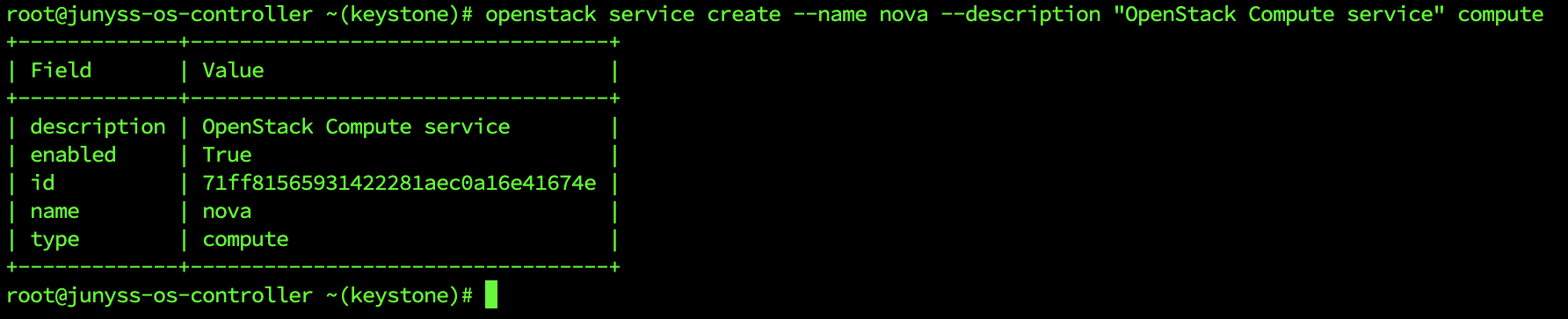 2022.06.06 - [IT/๊ทธ ์ธ IT] - [OpenStack] 6. Neutron ๊ตฌ์ฑ(1) [OpenStack] 6. Neutron ๊ตฌ์ฑ(1) Network Service ์ธ Neutron ์ค์ 1. keystone ์ Neutron user ๋ฐ service ์ถ๊ฐ root@nw1 ~(keystone)# openstack user create --domain default --project servi