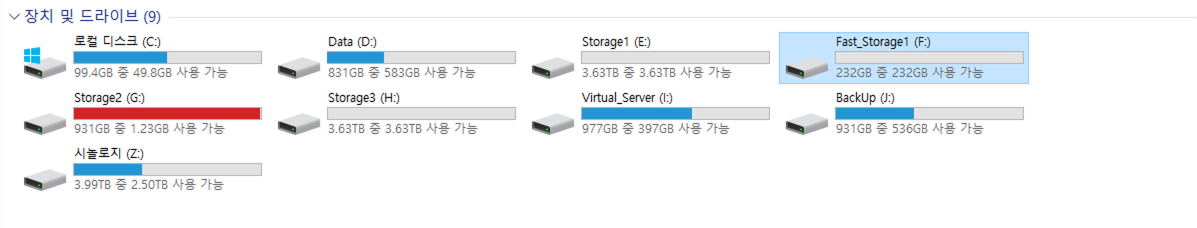 ์์ ๊ฐ์ด SSD์ธ F ๋๋ผ์ด๋ธ์ ๊ฐ์ ๋์คํฌ๊ฐ ๋ง๋ค์ด์ง๋๋ก ํด ์ค๊ฑฐ์์.