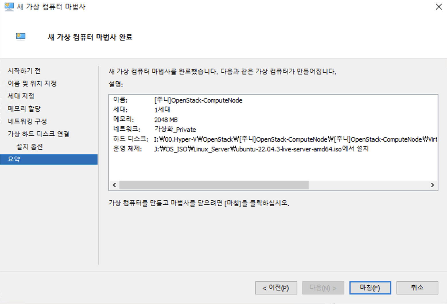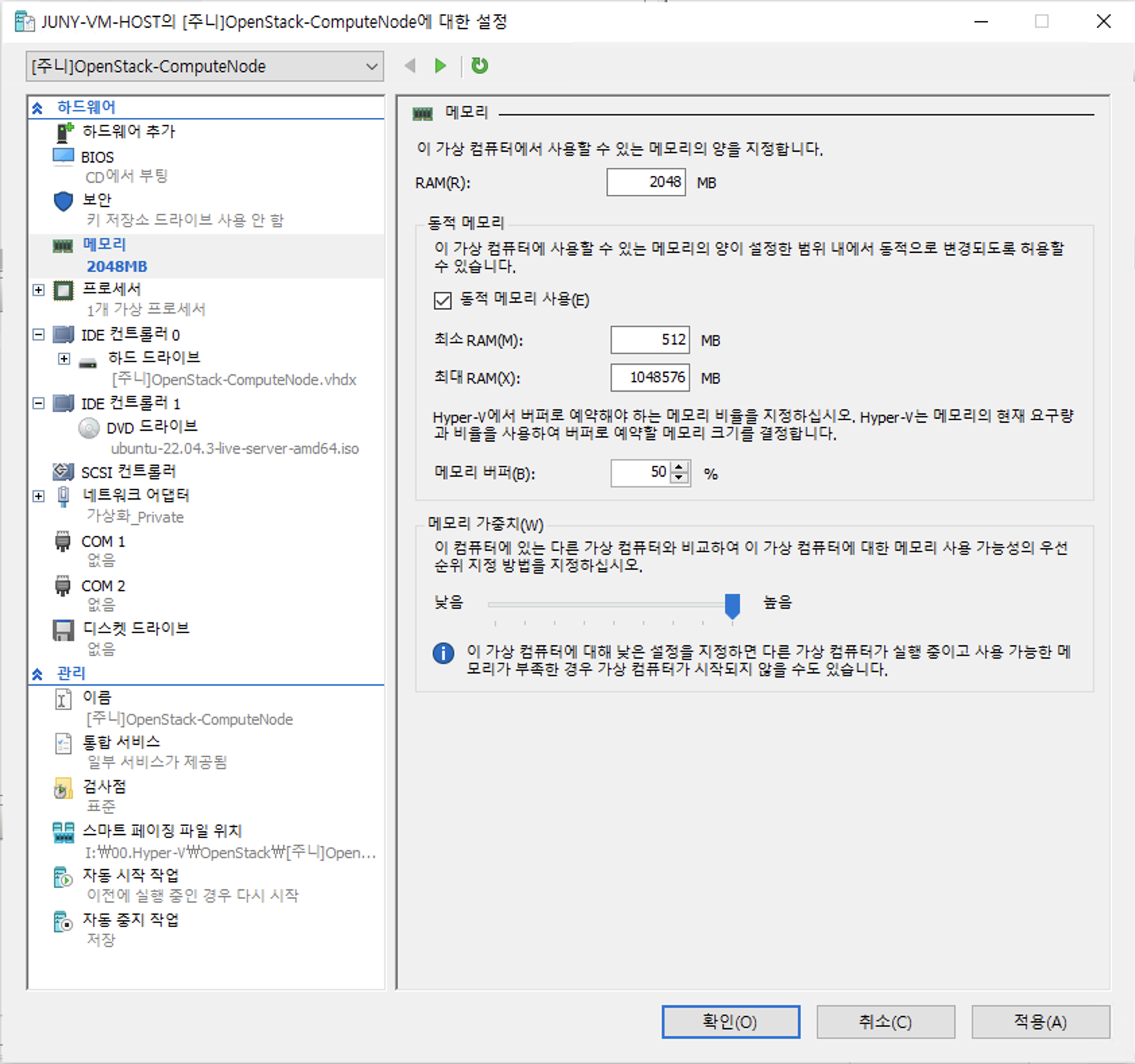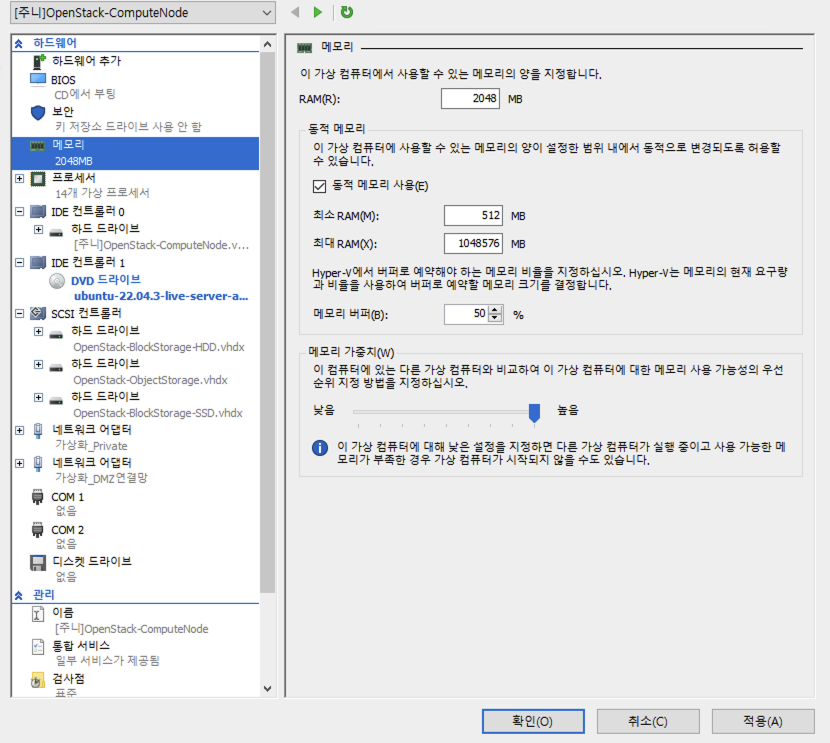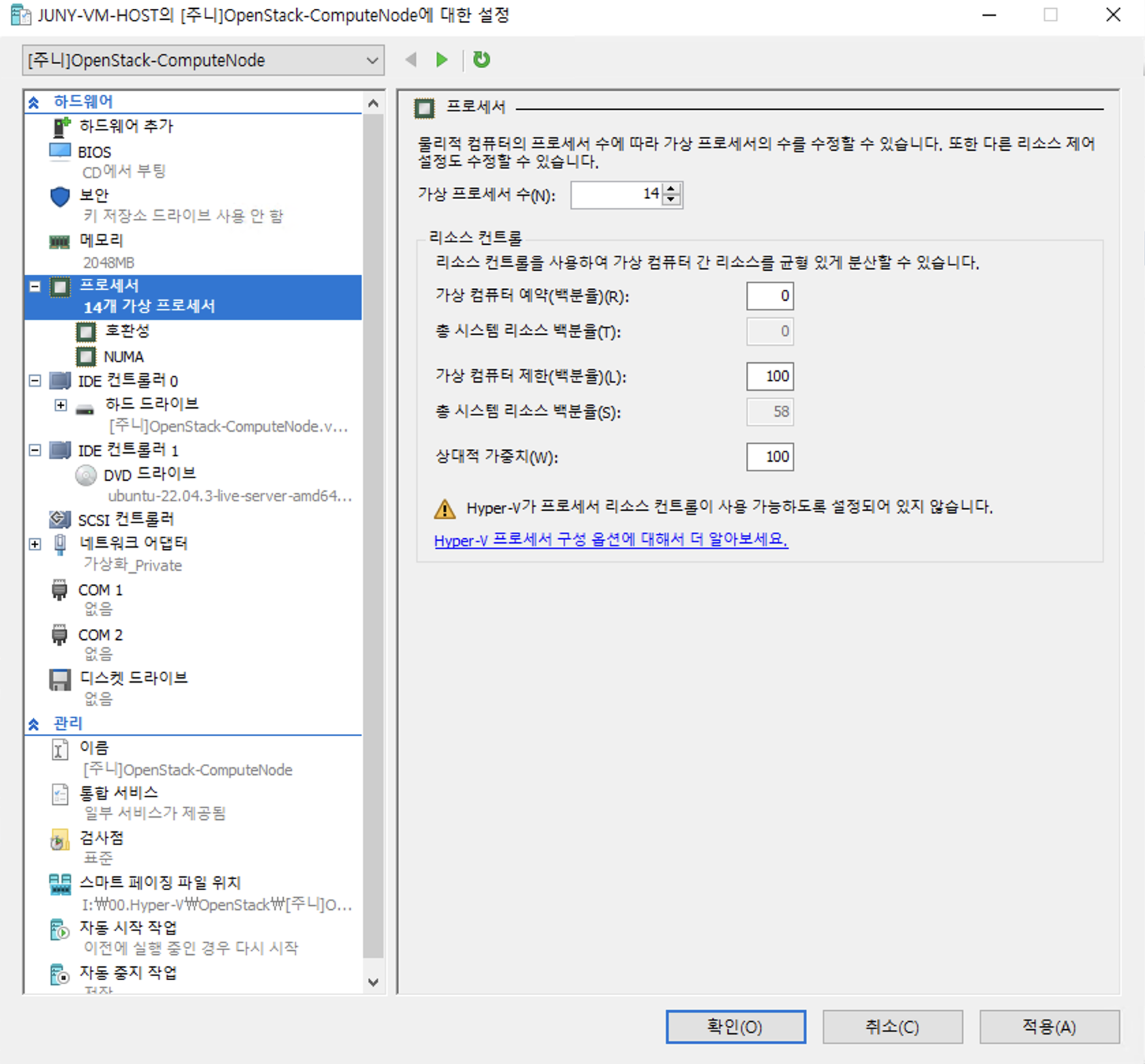 13. [Hyper-V] [Open Stack] [Compute Node] Hyper-V ๊ตฌ์ฑ ๋ฐ Ubuntu 22.04.3 LTS Server ์ค์น ๋ฐ ์ด๊ธฐ ๊ตฌ์ฑ