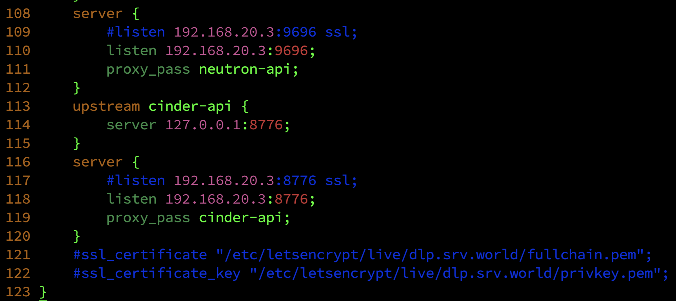 ์์ ๊ฐ์ด cinder API http ํต์ ์ ์ํด nginx์ ๋ด์ฉ์ ์ถ๊ฐํด ์ฃผ์์ด์.