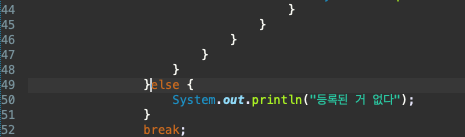 System.out.println("๋ฑ๋ก๋ ๊ฑฐ ์๋ค");
