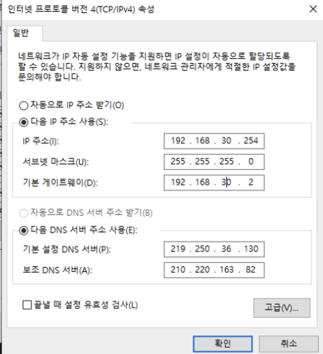 IP ๋์ญ์ 192.168.20.0/24๋ก ์ฌ์ฉ๋ ์ ์๋๋ก ์ค์ ํด ์ค ๊ฒ์ด์์.