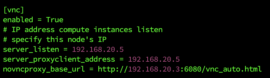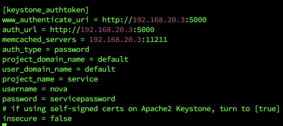root@node01:~# mv /etc/nova/nova.conf /etc/nova/nova.conf.org root@node01:~# # create new [DEFAULT] state_path = /var/lib/nova enabled_apis = osapi_compute,metadata log_dir = /var/log/nova # RabbitMQ connection info transport_url = rabbit://openstack:passw