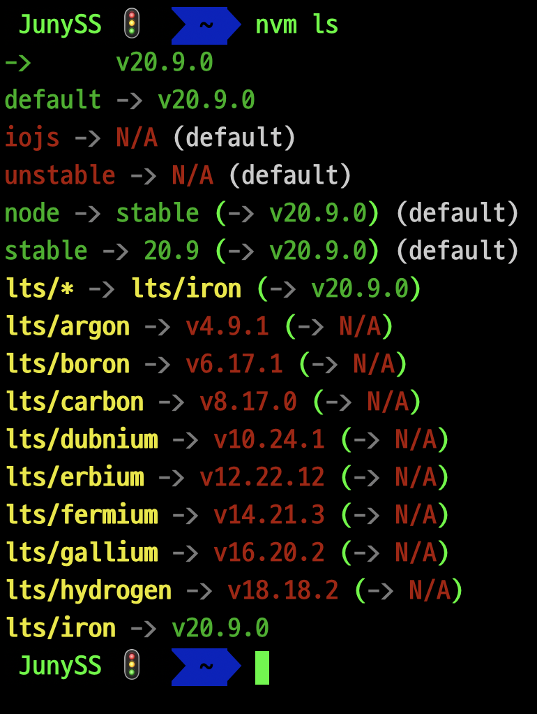 ๋ น์ด๋ฅผ ํตํด ํ์ฌ ์ค์น๋ Node.js์ ๋ชจ๋ ๋ฒ์ ์ ํ์ธํ ์ ์์ด์.