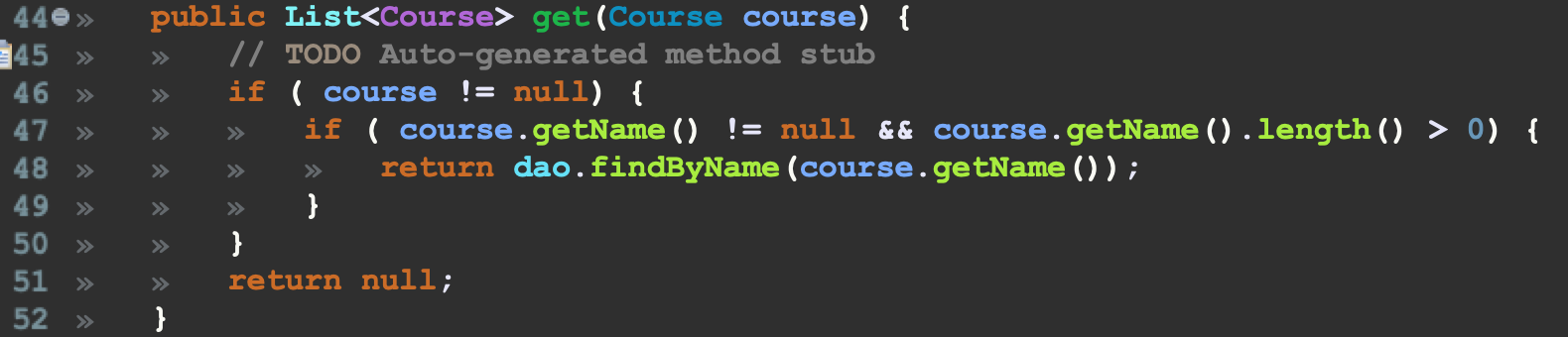 List<Course> list = service.get(course);// ArrayList.get(index)