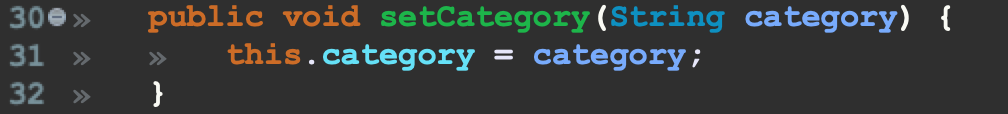 category๋ private๋ก ์ง์ ๋ ํ๋์ธ ๊ฒ ํ์ธ ํ์ จ์ฃ ? ๊ทธ๋ ๋ค๋ฉด Name๊ณผ ๋์ผํ ์ด์ ๋ก setter๋ฅผ ํธ์ถํ๊ฒ ๋ฉ๋๋ค.