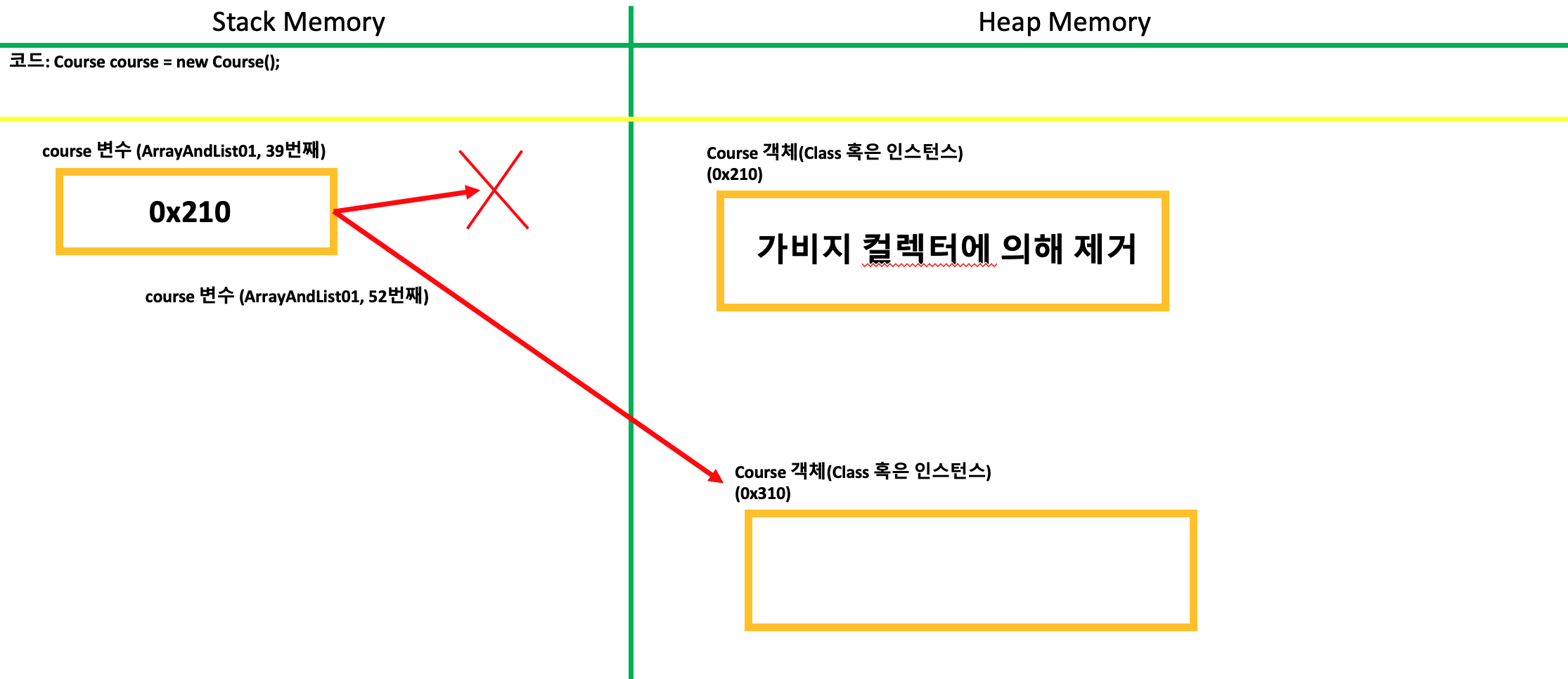 ์ฐธ๊ณ ๋ก course ๋ณ์์ Course ๊ฐ์ฒด๋ฅผ 3๋ฒ์งธ ์์ฑ ์ค์ ๋๋ค. course ๋ณ์๊ฐ ๊ฐ๋ฅดํค๋ ๊ฐ์ฒด ์ฃผ์๋ 3๋ฒ์งธ ๋ฐ๋๊ฒ ๋ฉ๋๋ค.