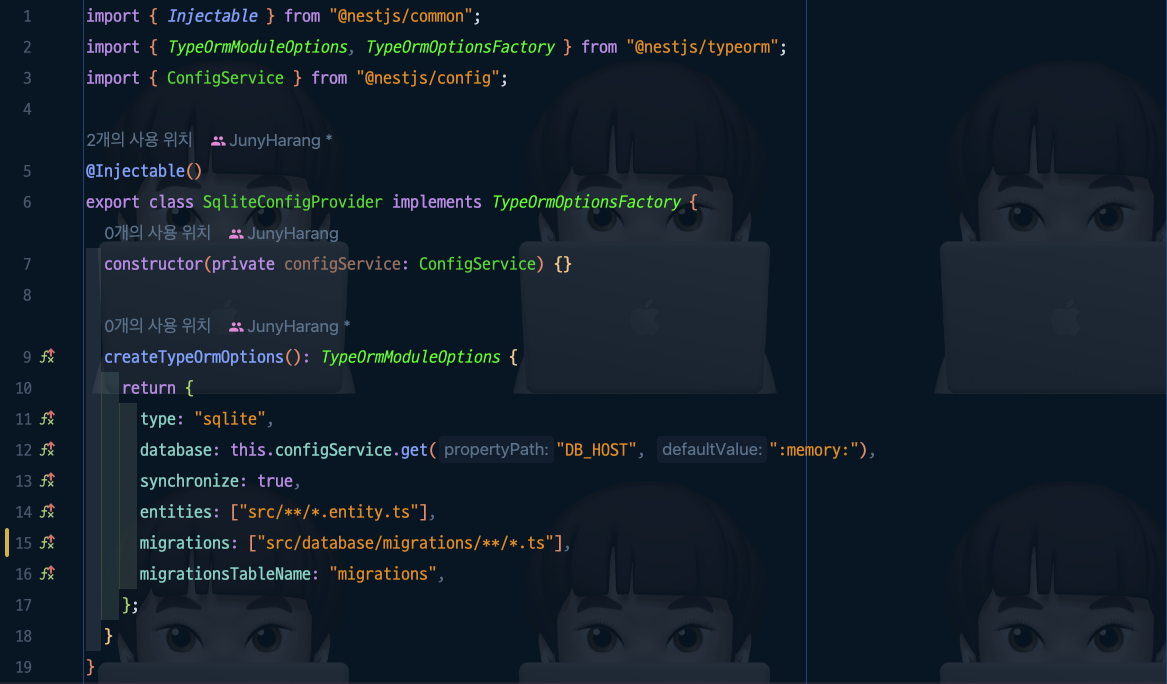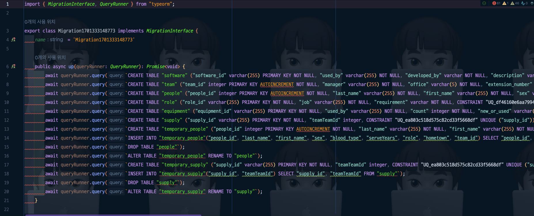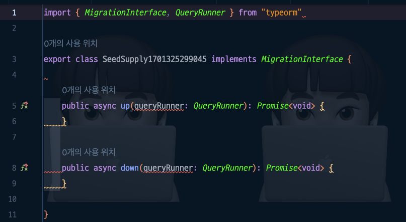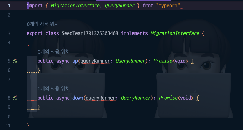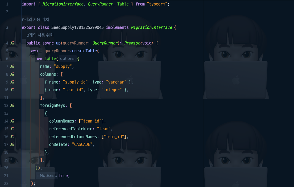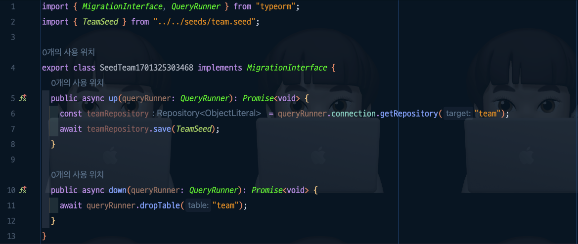 ์ด ํ์ผ์ ๋ณด๋ฉด DML Query๊ฐ ์์ฑ ๋์ด ์๋๋ฐ, ์ด๋ Entity๋ฅผ ๊ธฐ๋ฐ์ผ๋ก TypeORM์ด ๋ง๋ค์ด ์ค๊ฑฐ์์.