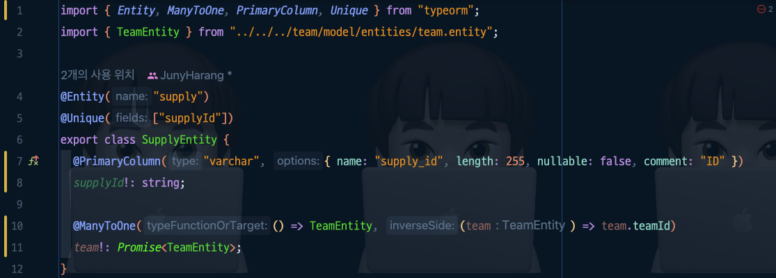 ์์ SupplyEntity์ 11๋ฒ์งธ ์ค team ๊ฐ์ฒดํ ๋ณ์๋ Pramise<TeamEntity>๋ก ๋ฐ์์ผ ํ๋๋ฐ,