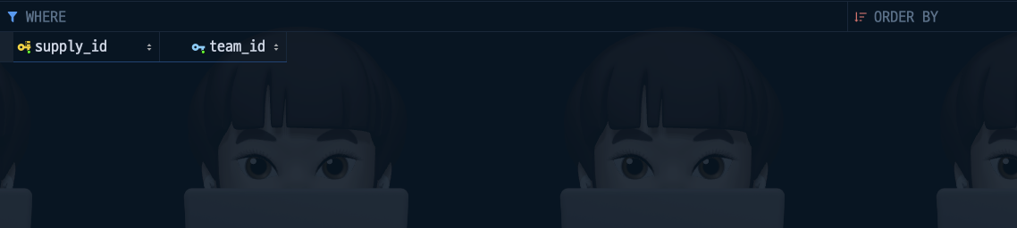 ์ด๋ ์์ ๊ฐ์ด Supply๋ Team๊ณผ ๊ด๊ณ๋ฅผ ๋งบ๊ณ ์๊ณ , FK๋ก team_id๋ฅผ ๊ฐ์ง๊ณ ์์ด์.