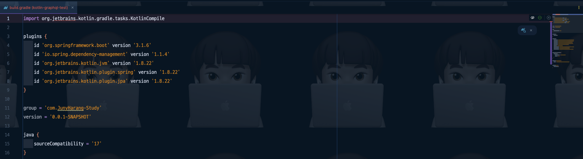 ๋๋ฒ์งธ ํ์ธ ์ฌํญ์ build.gradle์ 15๋ฒ์งธ ๋ฒ์ ์ด 17์ด์์ธ์ง ํ์ธํด์ผ ํด์.