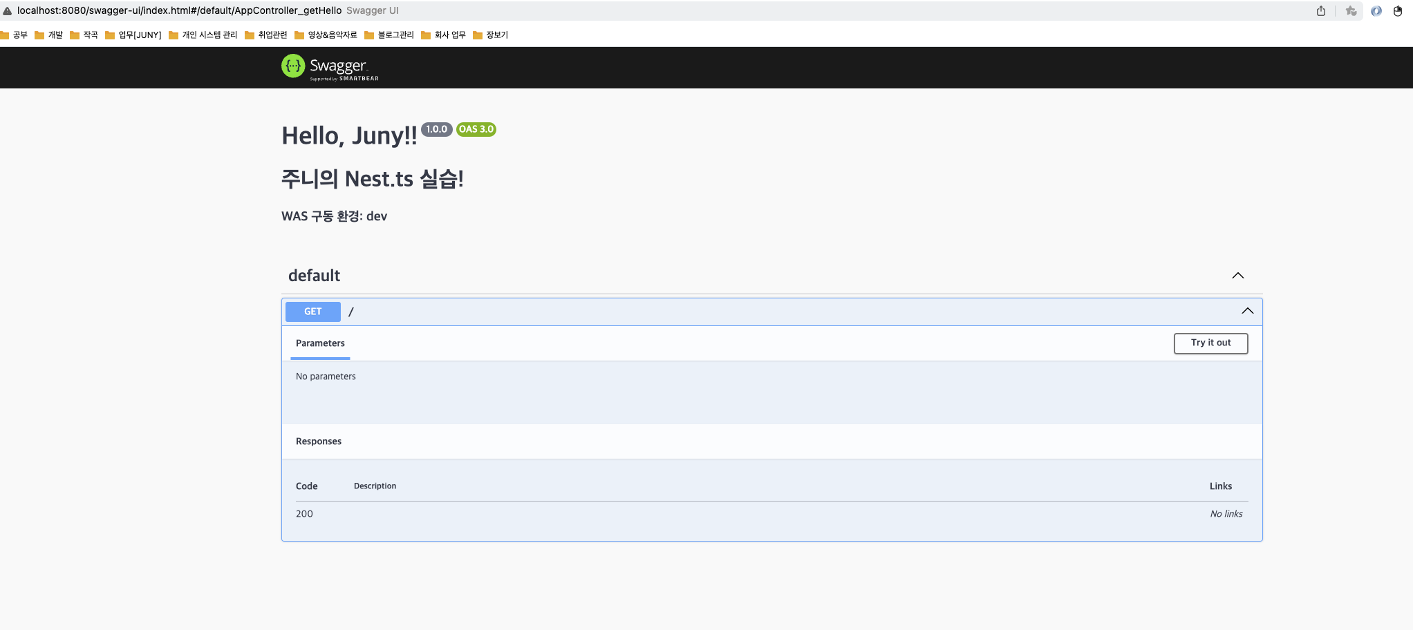 Swagger ์ค์ ๋ฐฉ๋ฒ์ ๋ํด์๋ ์ด ์ ์ ์์ฑํ๋ ์ด ๊ณณ์ ๊ด์ฌ์ ์ฃผ์ธ์.