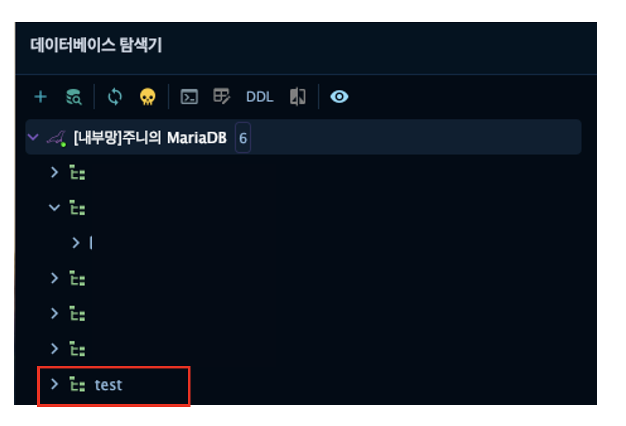 ๊ฐ๋ฐ ํ๊ฒฝ์ Database ๋ด์ test DB๋ฅผ ์์ง ์ ๋ง๋ค์ด์ ์ฐพ์ ์ ์์ด ๋ฌธ์ ๊ฐ ๋ฐ์ํ ๊ฑฐ์์.