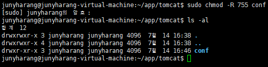 junyharang@junyharang-virtual-machine:~/app/tomcat$ chmod -R 755 conf