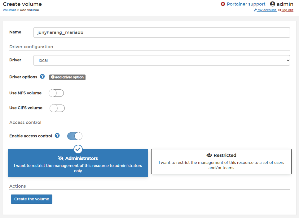 이름만 작성한 뒤 [ Create the volume ]을 눌러주면 되는 것이에요.