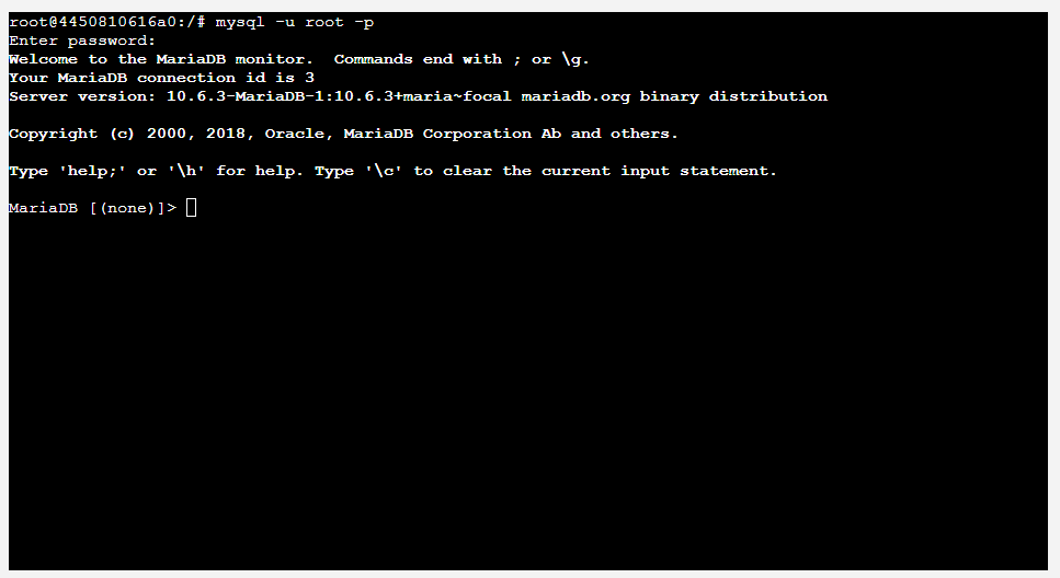 root@4450810616a0:/# mysql -u root -p
