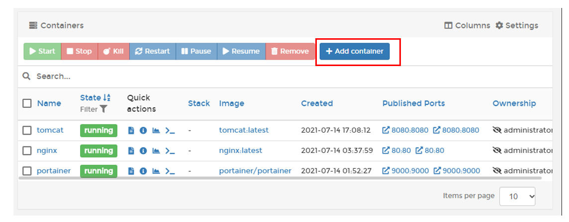 [ Add container ]를 눌러주세요!